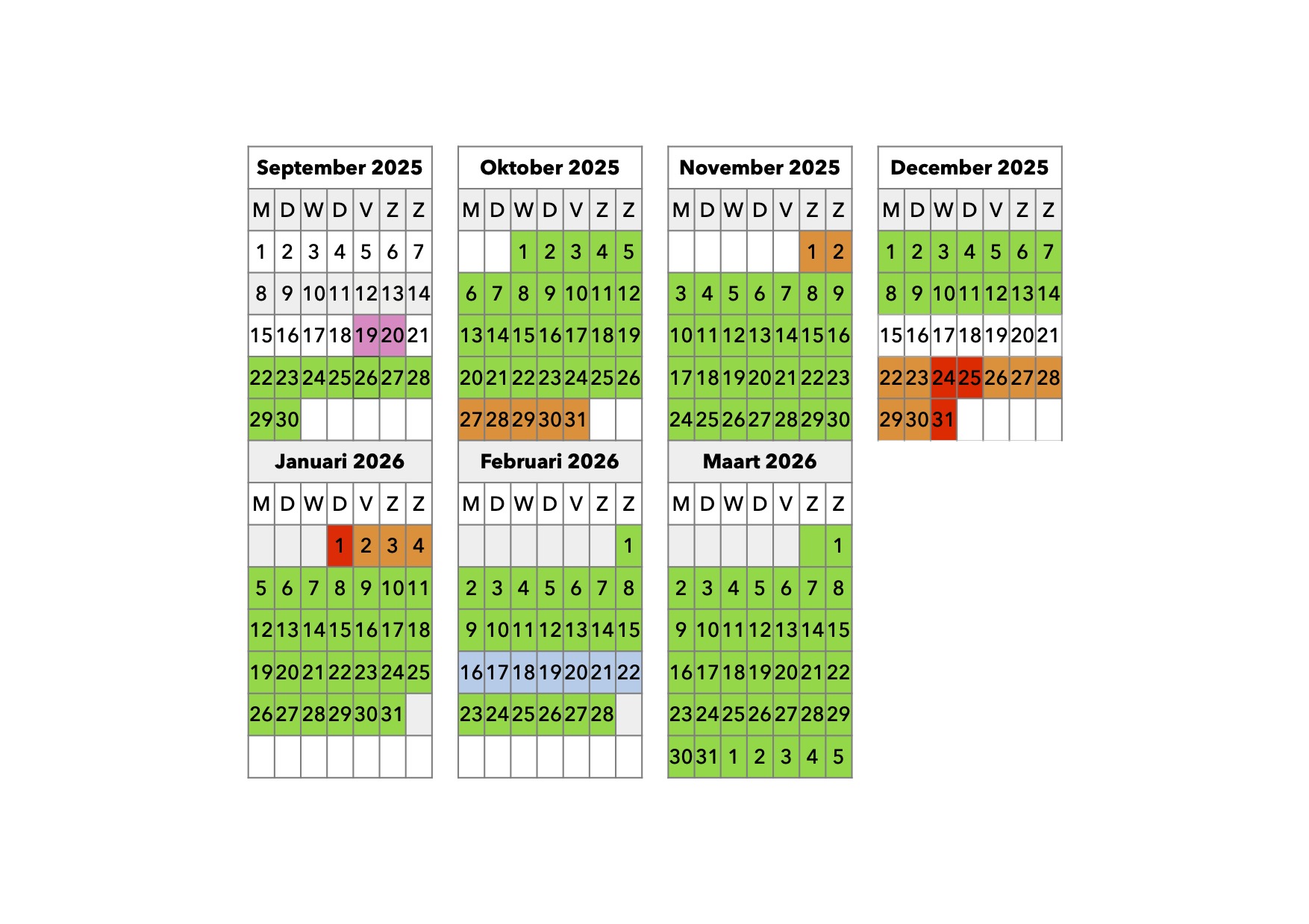 - De trainingsweken zijn gepland tussen woensdag 24 september 2025 en zondag 5 april 2026.